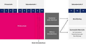 Förderschulen unterstützen Kinder mit sonderpädagogischem Förderbedarf. Der Regelförderort ist die allgemeine Schule, Eltern können aber eine Förderschule wählen. Es gibt 7 Förderschwerpunkte: Lernen, Sprache, emotionale und soziale Entwicklung, Sehen, Hören und Kommunikation, geistige Entwicklung, körperliche und motorische Entwicklung. Der Förderbedarf muss im Rahmen eines AO-SF Verfahrens festgestellt werden.